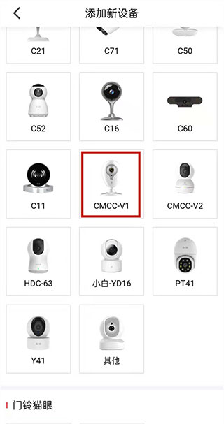 2、根据页面提示选择对应摄像头的具体型号,进入配置引导环节;