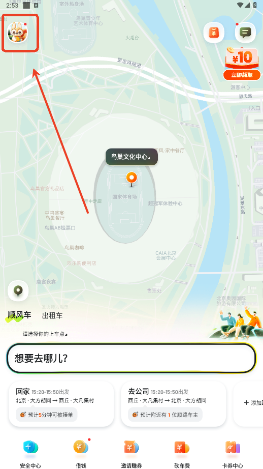 2、进入首页后,查看底部导航栏:如果当前显示车主相关标签,直接点击底部的乘客标签即可切换;若导航栏没有明确标签,可尝试点击左上角头像进入个人中心,查找身份切换或角色管理选项,部分版本会直接提供切换为乘客的按钮;另一种方式是在发布行程时,系统会提示选择身份,此时选择我是乘客即可。