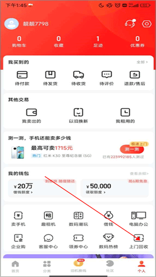 2、在跳转的页面里点击“上门回收”选项。