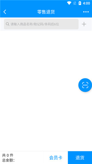 3、输入商品名称、助记码或条码后六位;若原订单使用会员卡支付,需填写手机号;确认信息后点击退货即可完成操作。