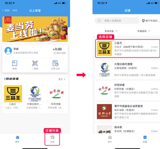 2、进入“云上食堂”首页后,浏览店铺列表,选择喜欢的商家并查看其菜单详情。