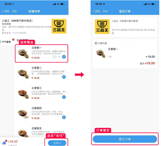 3、挑选心仪菜品,加入订单并完成结算支付。