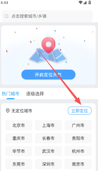 1、开启定位功能,自动识别当前位置。