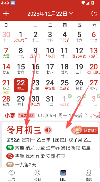 4、内置日历可帮助您了解日期信息,包括公历日期、星期几、对应农历日子等。