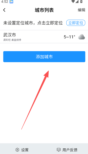 2、在列表页中添加需要关注的城市。