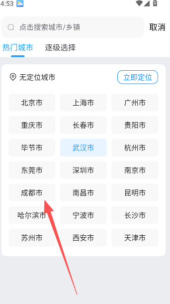 3、点击目标城市名称,即可完成切换。