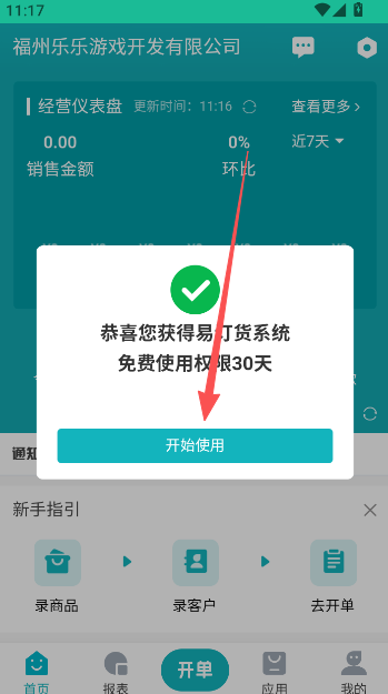5、注册成功后获得30天免费试用权限,在首页点击开始使用。