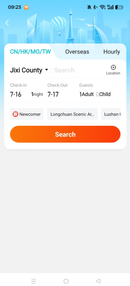 1、安装应用后,打开首页,点击底部导航栏的“Hotels”标签,进入酒店查询页面。
