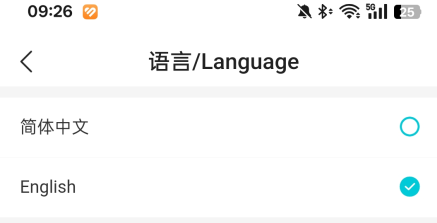 2、更新完成后打开应用,点击底部“我的”进入个人页面,选择“设置”选项,找到语言设置并切换为“English”。