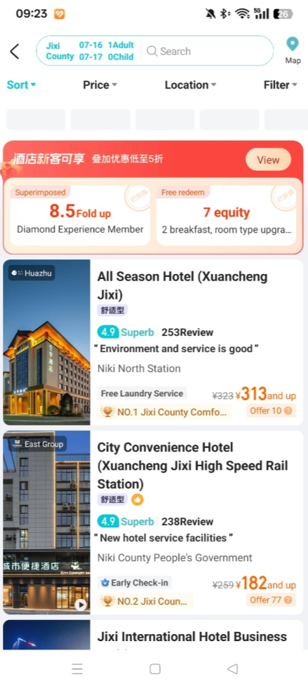 建议勾选“Foreign Guests Accepted”选项,筛选出可接待外籍旅客的酒店。