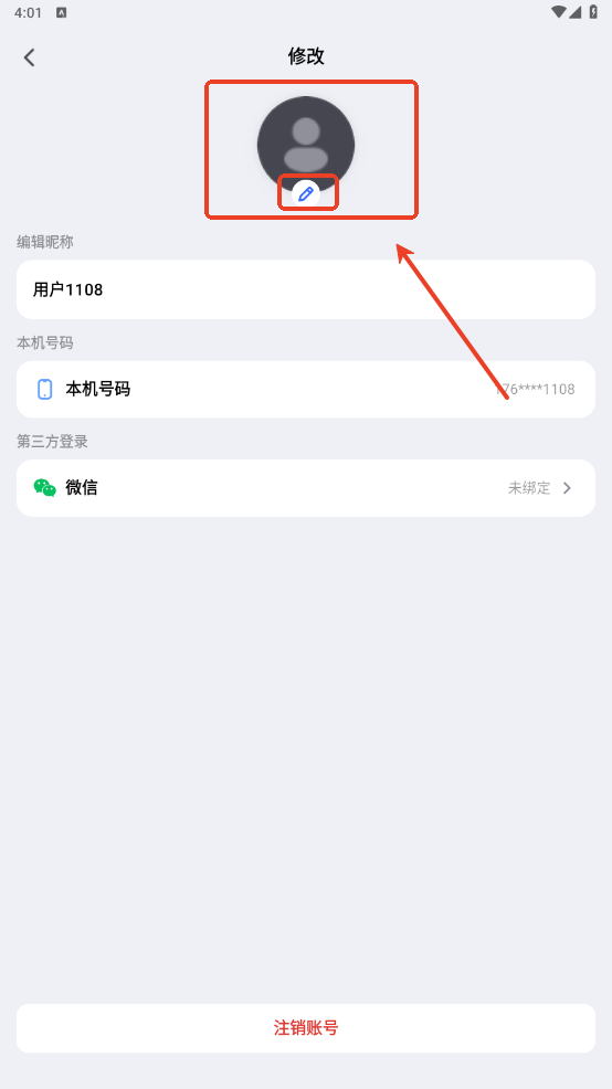 4、在头像位置点击编辑按钮。