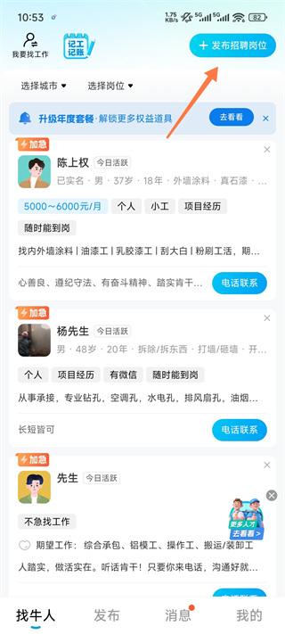 4、假如你选择的是【我要招人】,则可以在主页寻找合适人才或直接发布招聘信息