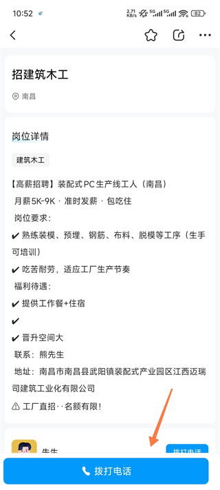 3、查看职位详细信息,若觉得自己符合要求可点击电话联系咨询