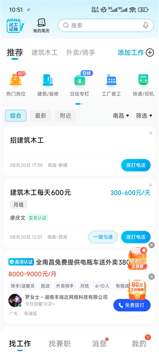 提供多行业海量职位选择,涵盖餐饮、零售、物流、工厂、销售、运营、客服、行政、建筑、互联网、教育、金融、新能源、酒店旅游、广告服务以及各类兼职日结等领域。