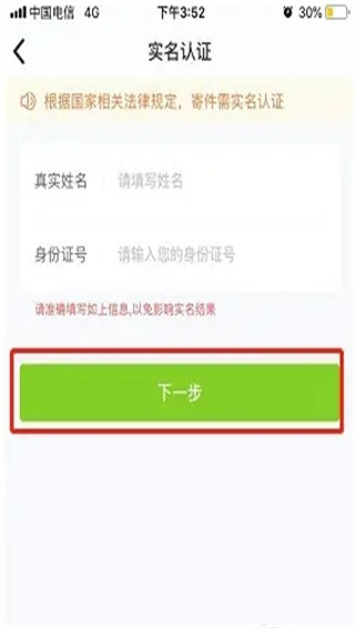 点击【实名认证】进入对应页面