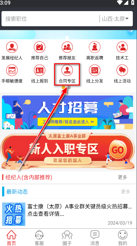 1.打开我要聘,点击合同专区。