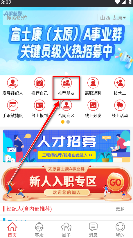 5.返回首页,点击推荐朋友;因无富士康工号无法继续登录演示,后续操作请按软件提示进行。