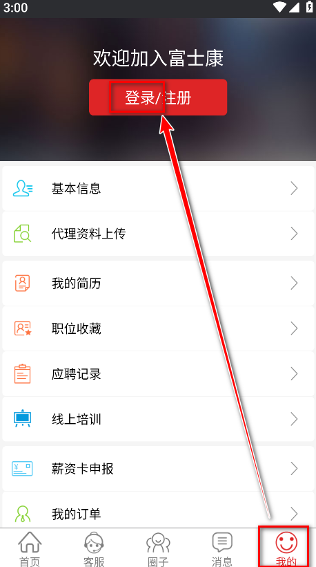 1.打开我要聘,点击右下角我的,再点击登录。
