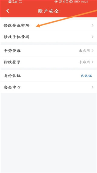 在账号安全页面的功能列表里,找到修改登录密码选项点击跳转。