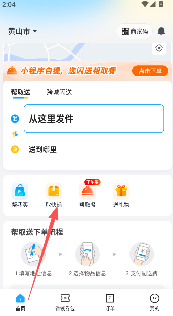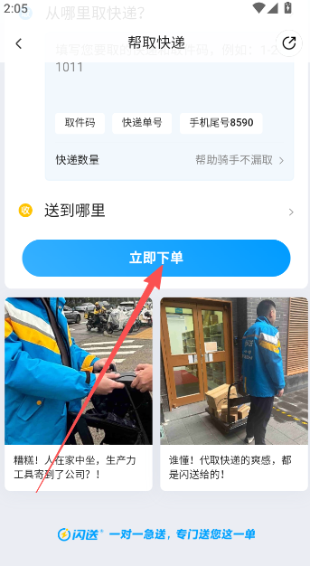 3、输入需要提取的快递单号与取件码,点击立即下单按钮。