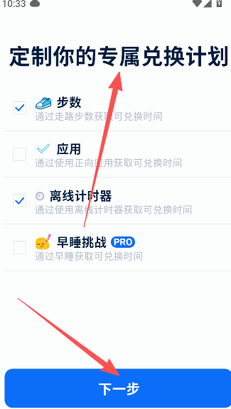 应用使用时长控制;步数兑换手机使用时间;专注任务奖励机制;每日数据自动清零;个性化难度调整。