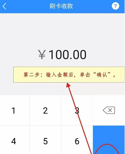 ① 在APP【收款】模块中选择【消费】,输入刷卡金额后点击确认交易,此时手机将提示“请刷卡/插卡”;