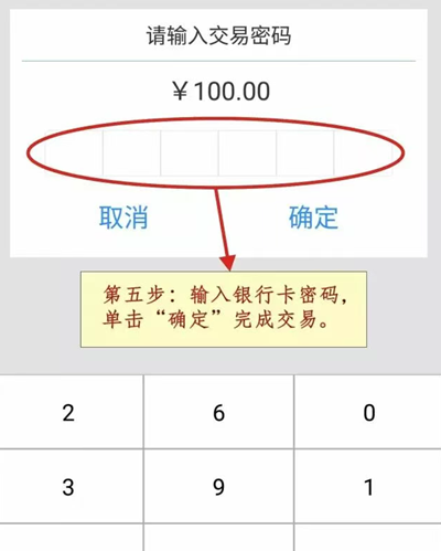 ② 所连接的POS机也会显示交易金额,持卡人确认金额无误后,将银行卡芯片朝内从右侧插入POS机;短暂读卡后,POS屏幕会显示卡号,点击确认键,持卡人输入支付密码并点击确定,提示“交易成功”即表示完成。