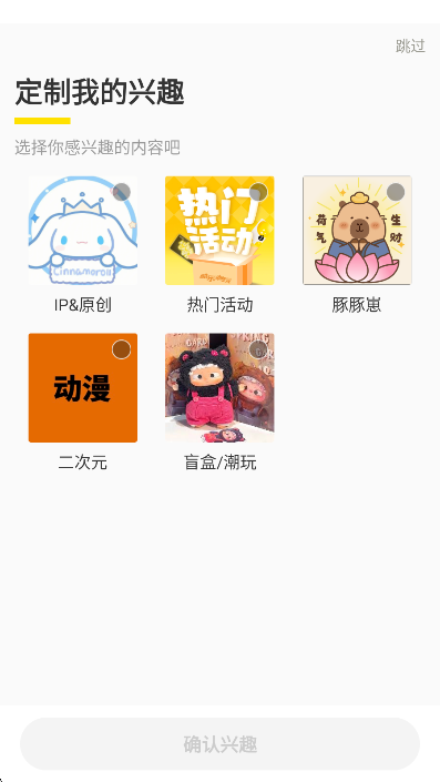 1、首次打开软件后,请根据兴趣选择个人偏好标签;