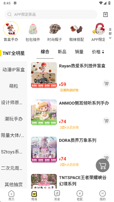 3、应用内包含多样化的潮玩商品,用户可根据分类快速查找感兴趣的种类。