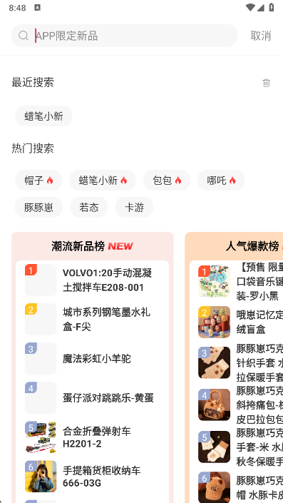 1、点击应用首页顶部的搜索框进入搜索页面;