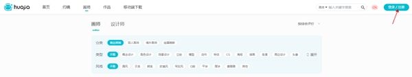1、进入画加官网,选择画师入口,点击右上角注册完成账号注册。