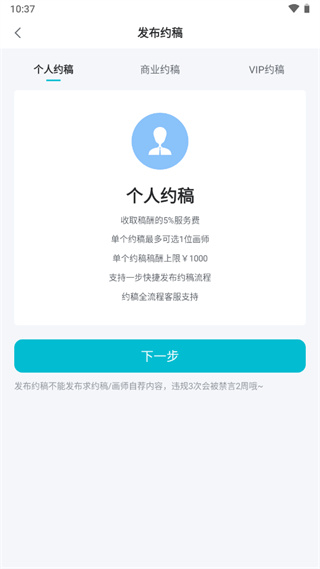 3、挑选约稿类型,点击下一步继续。