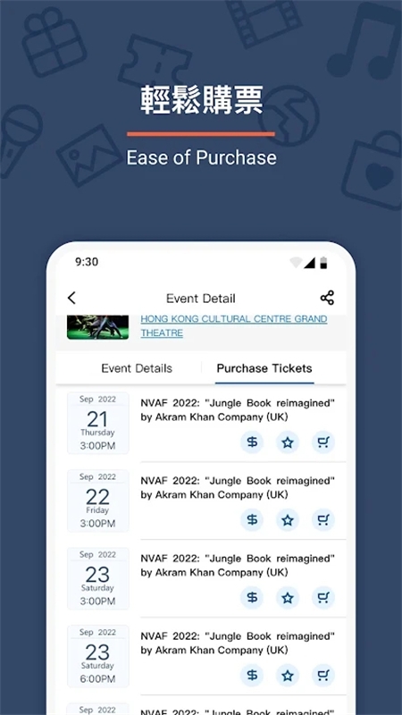 1、票务类型丰富:应用包含各类活动门票,从景区入园到演出赛事,满足多样购票需要,无需辗转多个平台;