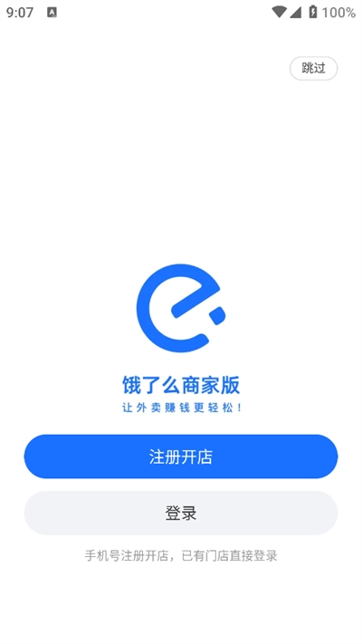 1、打开饿了么商家版应用,在首页找到并点击“我要开店”入口。