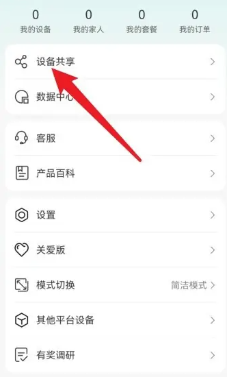 在共享设备页面中,选取需要共享的设备,将其分享给家庭成员。