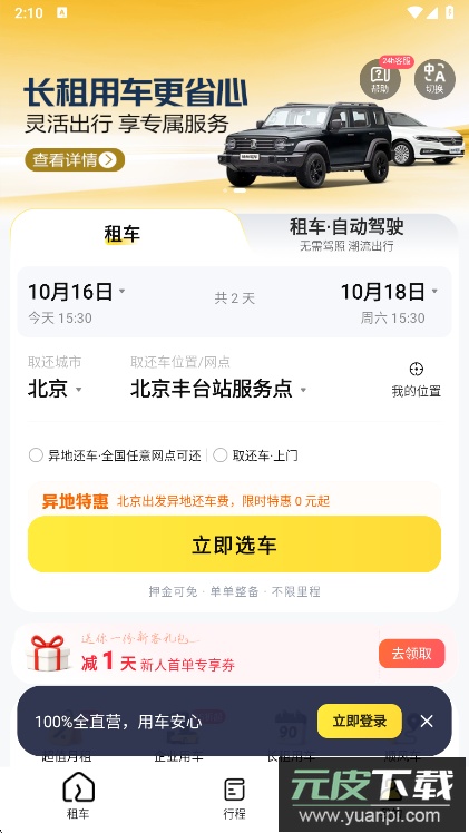 2、新人专享:新用户可领取首日0租金优惠券,让初次租车更轻松。
