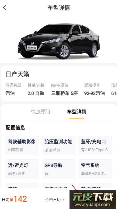 3、选定车型后仔细查看车辆详情,确认无误点击预定。