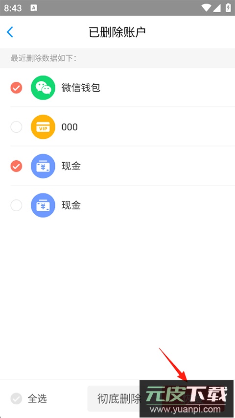 3、进入后选取需要恢复的数据账户,点击恢复即可完成操作。