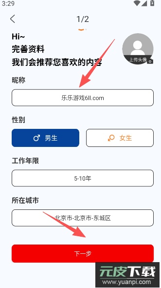 2、完善个人资料信息,点击继续进入下一步操作。
