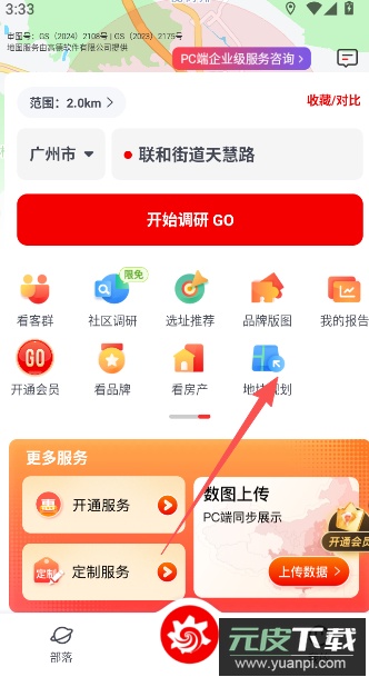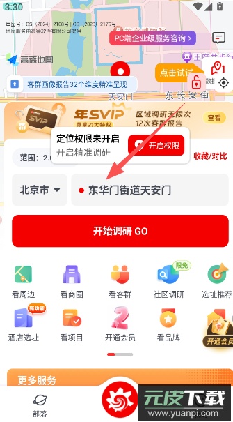 4、进入首页后,点击“开始调研GO”按钮,进入选址调研问卷环节。