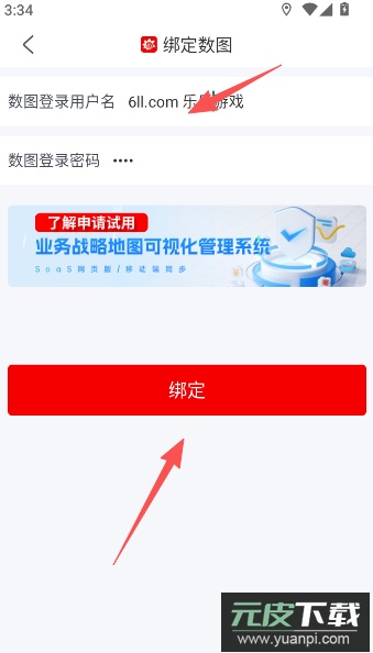 3、输入您的数图账号用户名与密码,即可完成绑定操作。
