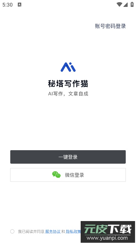 1、打开已安装的秘塔写作猫应用,点击界面下方的加号图标以选择功能。