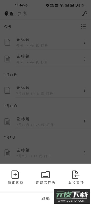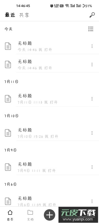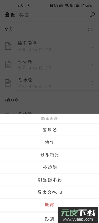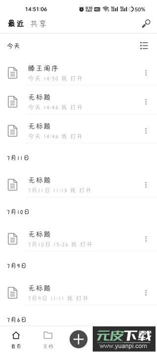 6、编辑完成的文档会保存在“最近”列表中,并自动同步至云端;用户也可将其导出为Word格式文件。