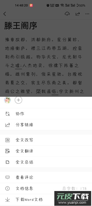 5、点击右上角的菜单按钮,还能使用全文改写、全文翻译、全文总结等高级功能。