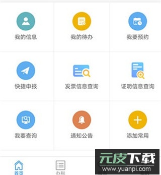 1、启动上海税务app最新版,首页展示多个常用功能入口,点击“办税”进入相应页面;