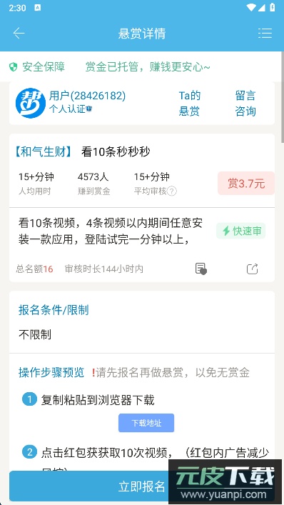 1.悬赏数量丰富:每日提供大量悬赏任务,所有赏金均托管于平台内,保障安全;