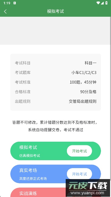 2、可选择模拟考试,体验高度仿真的考场环境。