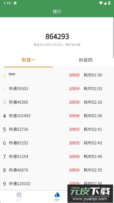 3、在排行榜页面,可以查看众多用户的成绩排名情况。