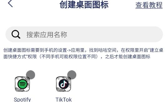 注意:操作前需在手机设置的应用权限管理中,为咕咕空间开启“建立桌面快捷方式”权限,具体位置因机型而异。