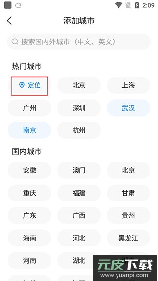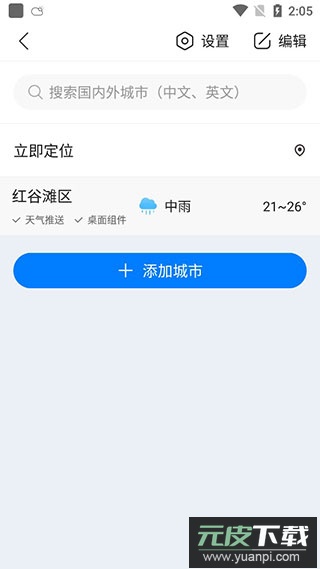 3. 您可以使用自动定位添加当前所在城市,也可以通过手动搜索来添加目标城市。